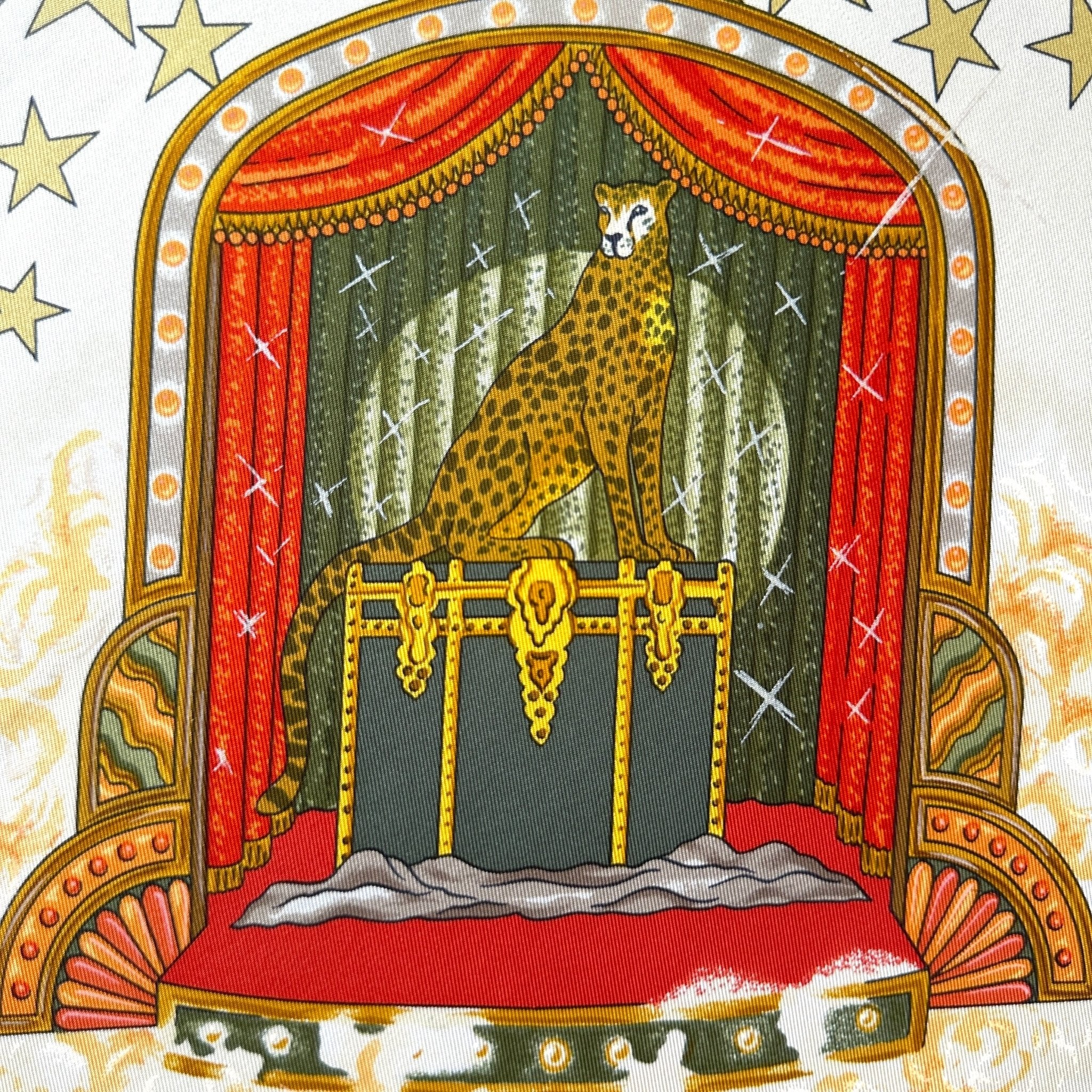 Créé par Claudia Stuhlhofer-Mayr pour la collection Automne-Hiver 1999, La Magie est un carré à la fois surprenant, foisonnant et profondément poétique. La composition mêle humour, illusion et enchantement dans un hommage vibrant à l’univers des magiciens. Réédité une seule fois en 2002, ce modèle est aujourd’hui rare et recherché par les collectionneurs.